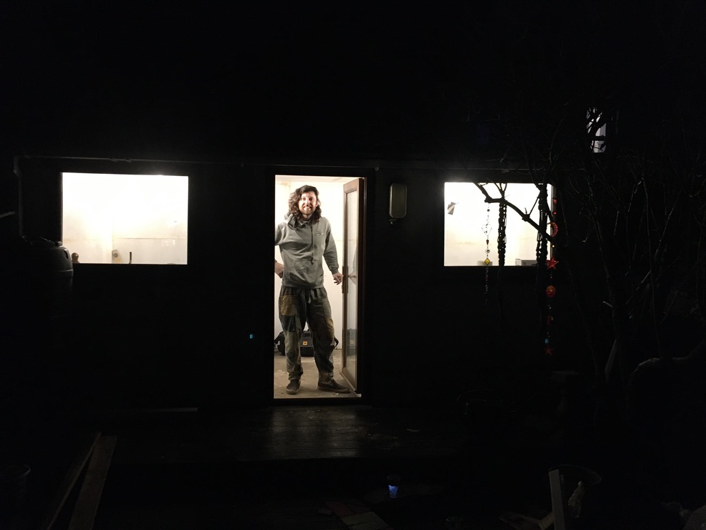 During the time of replacing the roof and removing the cladding, our friend was also very busy insulating the inside and making an internal wooden frame which we lined with plywood sheets. I then filled in all the gaps and painted it white.